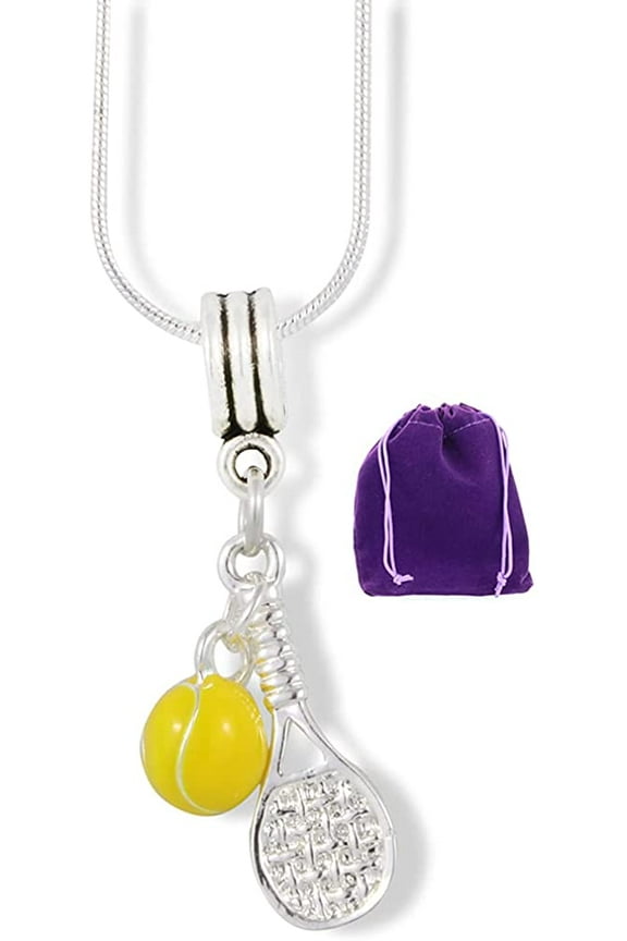 Tennis Racket (Racquet) with Yellow Tennis Ball Charm Snake Chain Necklace $24.97