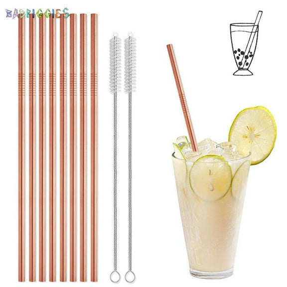 BadPiggies Set of 8 Reusable Stainless Steel Drinking Straws 10.5" Extra Long with Cleaning Brushes for 20 24 30 oz Fit Yeti Tervis Rtic