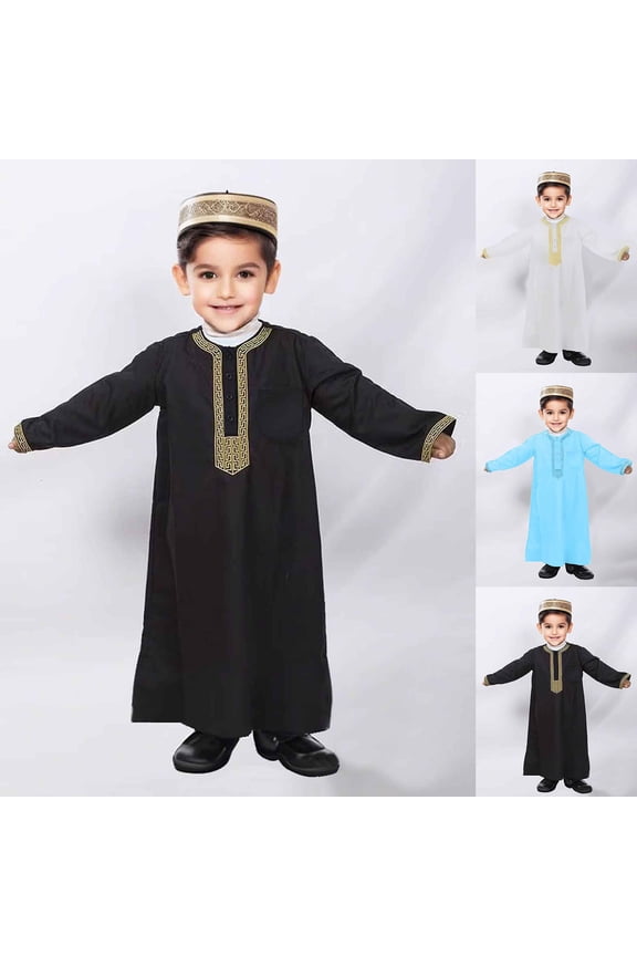 Arabic Thobe for Boys Kaftan Robe Long Sleeve Embroidered Traditional National Children's Wear Elegant ClothingClearance Mens Arabic Robe Long Sleeve Traditional Attire Thobe for Men Trendy Casual Graphic Stand Collar Soft Lightweight Tops From $27.17