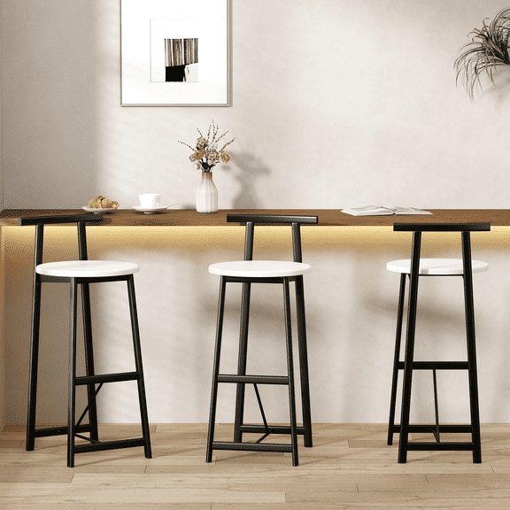 Bar Stools Kitchen Island Bar Chairs Set of 3 Metal Counter Barstools with Backrest for Dining Pub Room (White) From $155.99