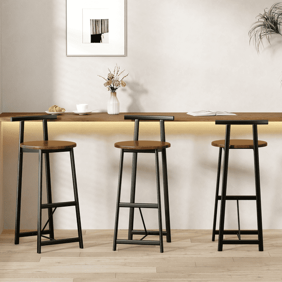 Dycanpo 24'' Wooden Bar Stools Set of 3,Counter Height Bar Stools with Backrest for Kitchen Island,Black From $199.99