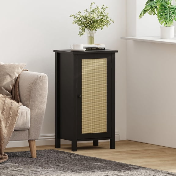 Clearance TROPOW 2-Tier Nightstand with Woven Rattan Door, Bamboo Floor Cabinet for Bedroom, Kitchen, Living Room, Hallway – Slim Design Accent Furniture, Freestanding Space Saving Storage Organizer From $44.21