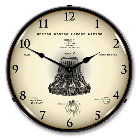 Collectable Sign and Clock 1914 Louis Comfort Tiffany Lamp Shade Patent LED Lighted Premium Wall Clock $169.95