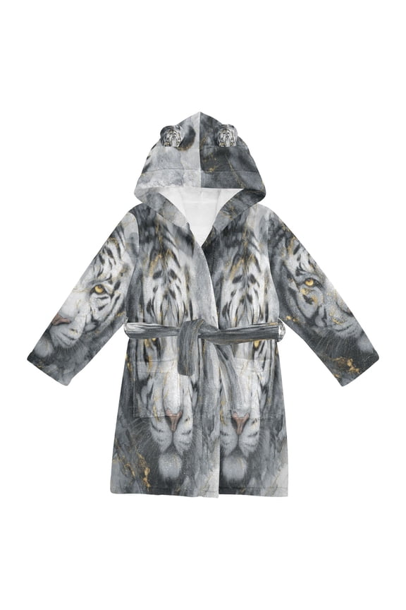 Bathrobes Belt Hooded Phantom White Tiger Creative PatternBathrobes Belt Hooded Curious Little Tiger Creative Pattern