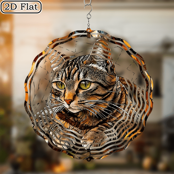 3D Rotating Bohemian Tiger Spotted Cat Hanging Wind Chime - Concentric Spiral Design Courtyard Garden Decoration Modern Art Natural Inspiration Wind Chime 10 * 10 No Electricity Required