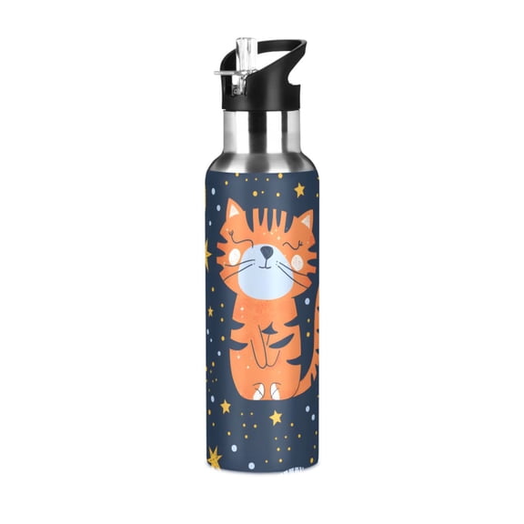 Cute Tigers Stars Sports Water Bottle with Straw Lid Insulated Stainless Steel Leak Proof BPA Free Thermal Mug with Handle for Gym Yoga Cycling Camping