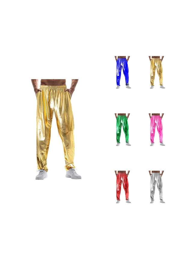 Mens Night Club Skinny Shiny Gold Coated Metallic Fashionable Pants Stage Perform Singer Disco Trousers Gold XXL(36)Metallic Shiny Cargo Pants For Women With Elastic Waistband And Pockets For Jazz And Hip Silver M