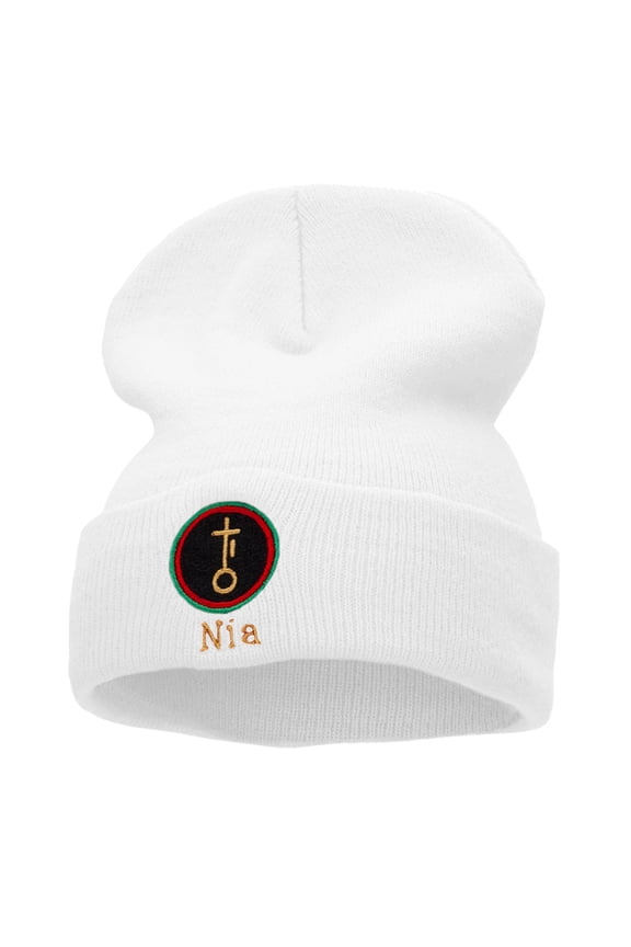 Nia is Purpose Embroidered Knitted Long Beanie - White OSFMKnit Beanie $20.65