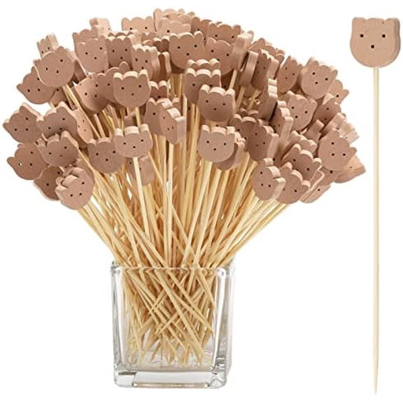 current price $10.23100Pcs Bear Cocktails Pick Appetizer Skewers Wood Toothpicks Garnishs Decorative Sticks Party Supplies