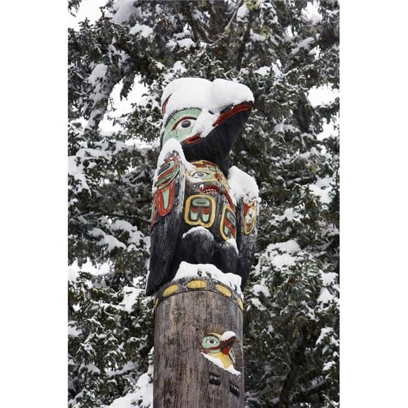 Raven Totemic Figure On Tlingit Totem Pole At Auke Bay Recreation Area. Winter In Southeast Alaska. Print