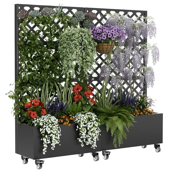 Riflewell Metal Planter Box With Trellis, With Privacy Screen, 72''x36''x16'' Outdoor Privacy Screen Planter For Climbing Plants/Vegetables/Vines, With Drainage Holes & Lockable Wheels, 2 PCS From $139.99