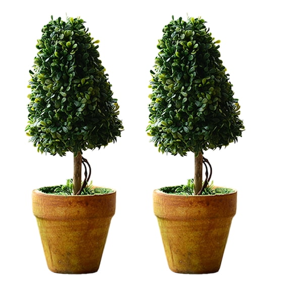 current price $16.09AkazzZ 8.26in Artificial shrub bonsai Small Fake Plant with Pot, Mini Greenery Tabletop, Shelf Decorations, Faux Plant for Indoor & Home Decor (Triangle / 2PCS)