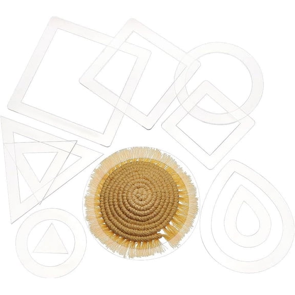 current price $15.2412Pcs Acrylic Macrame Trimmer Transparent Macrame Coaster Tool Fringe Trimming Cutting Guide Tool Round Ring Square Triangle Teardrop for Making Coasters Macrame Tassel DIY