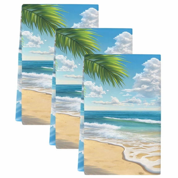 Beach Ocean Waves Kitchen Towels Set of 3, Summer Tropical Palm Tree Leaves Soft Microfiber Dish Towels, Absorbent Quick-Dry Washable Dishcloths for Kitchen Cleaning, Drying Dishes, 18x28 Inches From $19.34