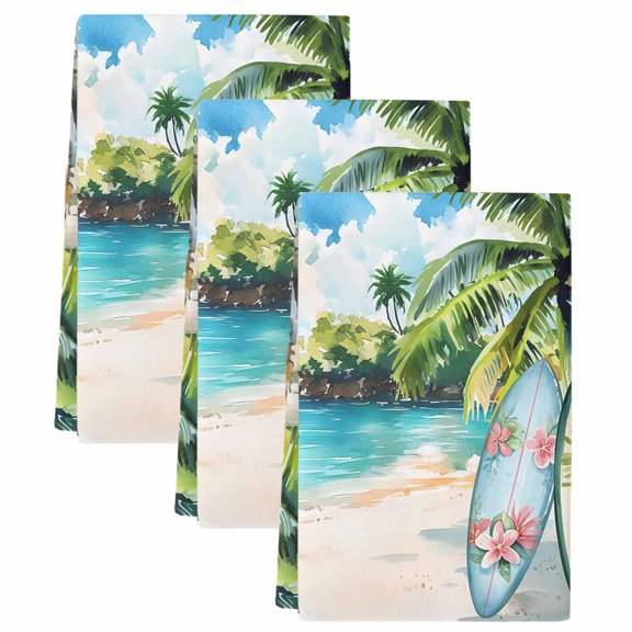 Summer Beach Kitchen Towels Set of 3, Tropical Coastal Palm Tree Surfboard Soft Microfiber Dish Towels, Absorbent Quick-Dry Washable Dishcloths for Kitchen Cleaning, Drying Dishes, 18x28 Inches From $19.11