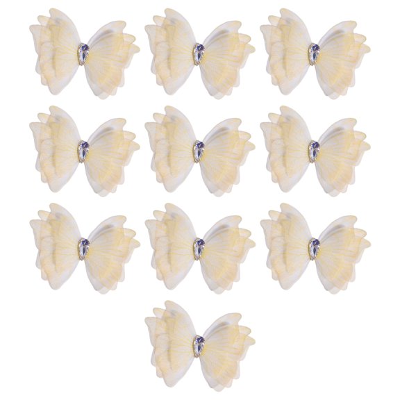 5 Layer Tulle Butterfly Applique Craft Kits with Crystal Droplet for Handmade Garment Hair Clip Project Accessory 10PCS