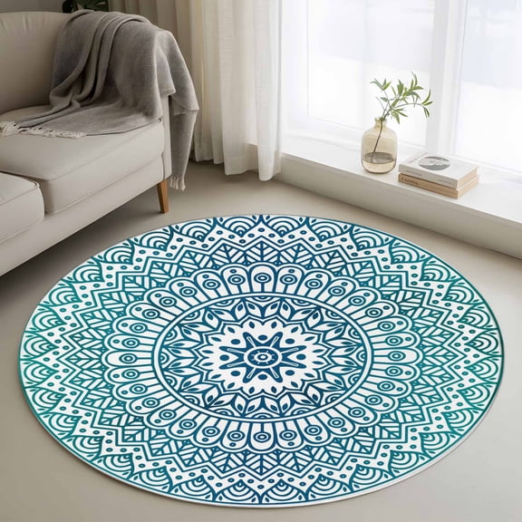 Round Rug 6Ft Turquoise Ocean Circle Area Rugs Washable Non Slip Indoor Floor Mats Carpet for Living Room Bedroom Dining Room Home Decor