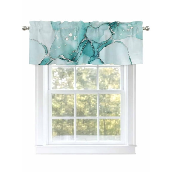 Turquoise Marble Valances for Windows Abstract Marble Valance Rod Pocket Light Filtering Short Window Treatments Curtains for Kitchen Bathroom Living Room Bedroom, 1 Panel, 42 x 12 Inch From $19.99