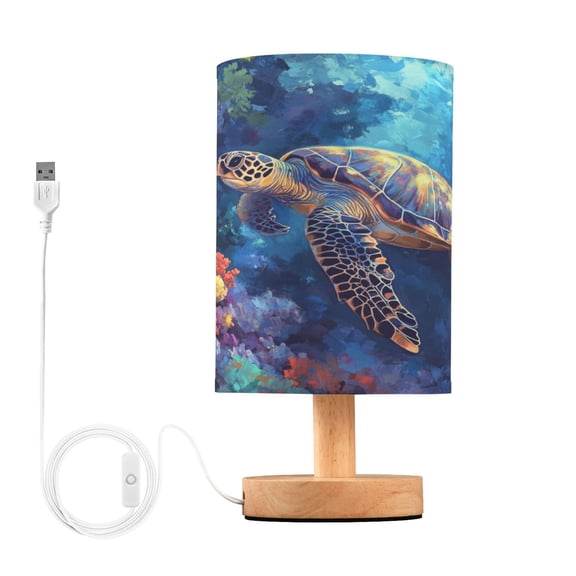 WOBOGO Sea Turtle Bedroom Table Lamp USB Power Connector Wooden Base Round Linen Shade For Living Room Desk $23.99