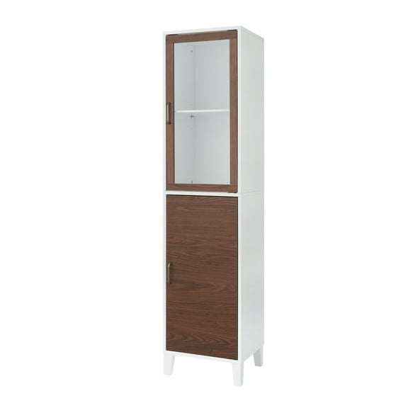 Teamson Home Tyler Modern Wooden Linen Tower Tall Storage Cabinet with Two Doors, Walnut/White