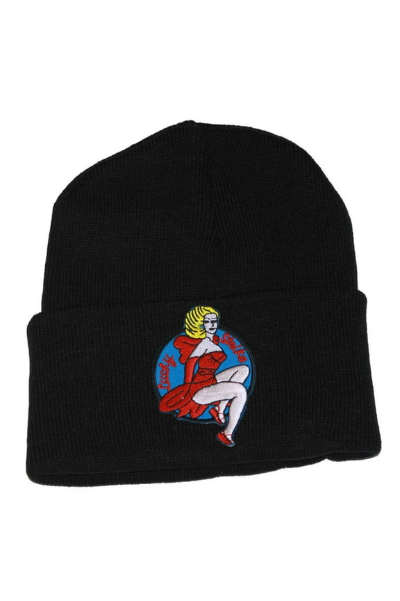 Lucky Strike Lady Luck Black Beanie 3D Patch EmbroideryRoute US 66 3D Patch Embroidery Cuff Beanie, Black $10.95