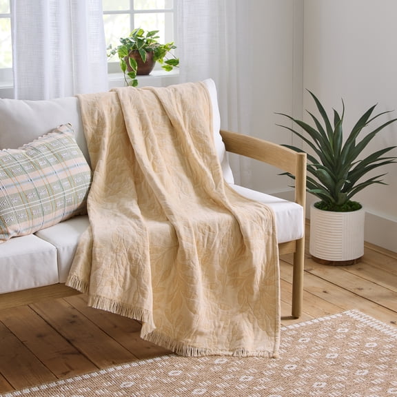 Better Homes & Gardens Woven Chenille Botanical Throw Blanket, UK Butter, 50x72 Inches $18.69
