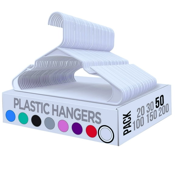 current price $29.97(50) White Plastic Hangers, 16.5x9in Ultimate Space-Saver Premium Heavy-Duty Clothes Shirts Blouses Dress Multipurpose Non-Slip Hanger Unclutter Home Wardrobe Organizers & CUSTOM Storage Carrier