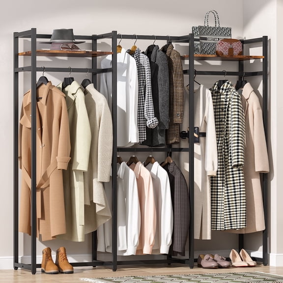 Fnova Large Garment Rack, Metal Freestanding Closet Organizer and Storage System, Heavy Duty Clothing Wardrobe with 2 Shelves and 4 Hanger Rods, Max Load 500Lbs, Dark Black From $159.99