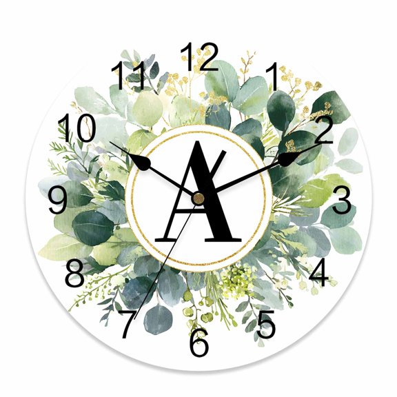 Wall Clock Letter A Clocks PVC Silent Non-Ticking Battery Operated Decorative Alphabet Green Eucalyptus Leaves Round Clock for Home Living Room Kitchen Bedroom Office School Wall Decor 10 Inch From $26.99