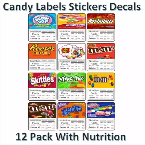 12 Product Vending Machine Candy Labels Stickers With Nutrition 2.5 $29.32