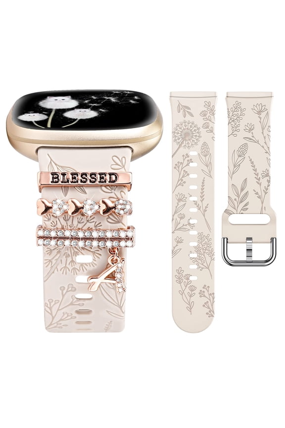Decorative Ring Loop Compatible with Fitbit Versa 4/Versa 3/Sense 2/Sense Band Women, Cute Soft Silicone Dandelion Flower Pattern Sport Designer Fancy Summer Strap for Versa 4 (with Band)174.8 out of 5 Stars. 17 reviews