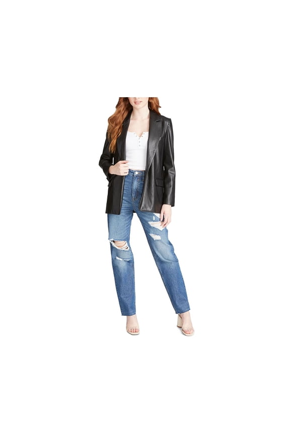 Jeans Womens Faux Leather Open-Front Blazer (Black, L)Ladies' Brushed Plaid Crop Jacket, Red, M $28.00