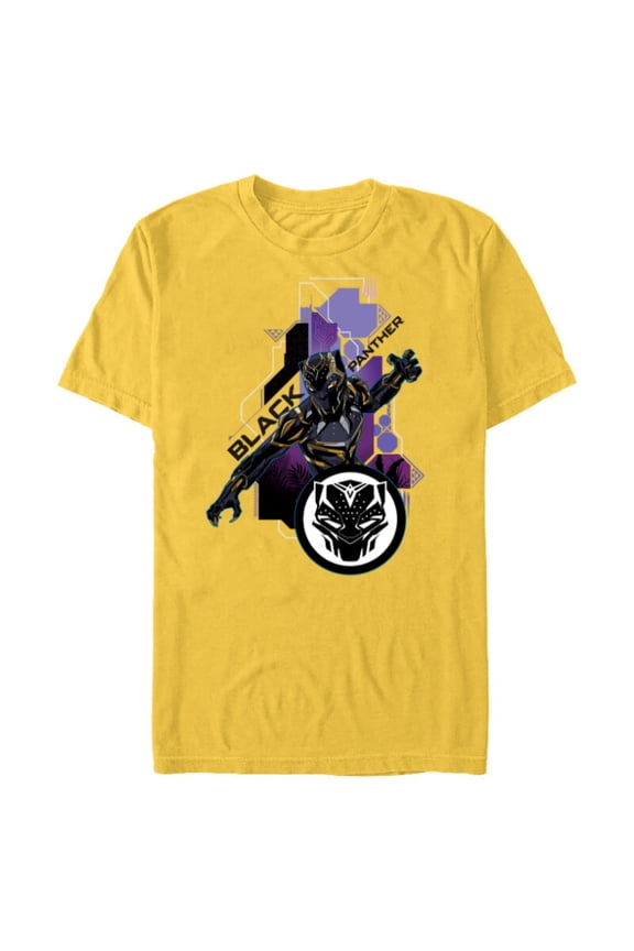 Men's Black Panther: Wakanda Forever Yellow and Blue Pattern Logo Graphic Tee Silver Medium