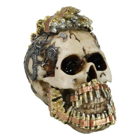current price $25.99Military War Steampunk Skull With Rifle Bullets Mohawk And Dragon Figurine