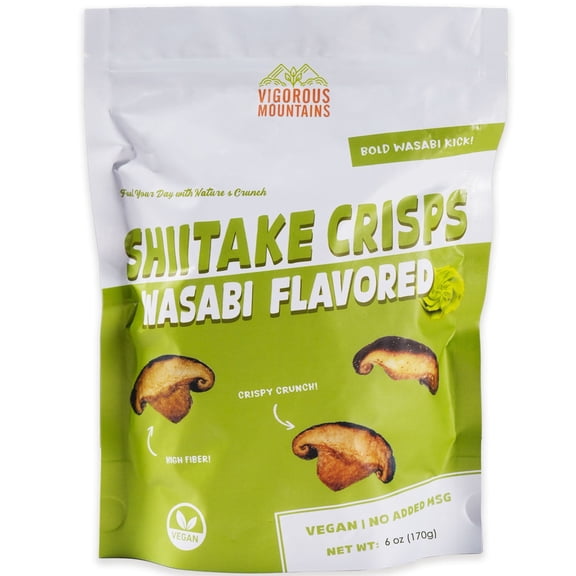 current price $11.99VIGOROUS MOUNTAINS Shiitake Mushroom Snack Chips, Crunchy Veggie Crisps, Wasabi Flavored Dried Snacks | Non-GMO Low-Fat High Fiber | Vegetarian-Friendly in Resealabl
