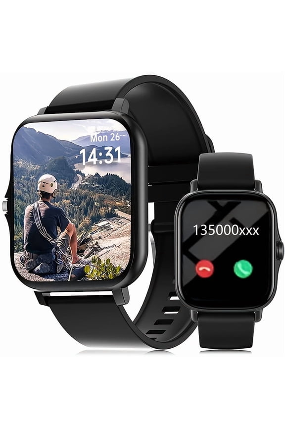 Smart Watch Bluetooth Call Compatible with Ios and Android, Mens Womens Watch Waterproof Smart Watches Black$19.99current price $19.99Smart Watch Fits for Android and iPhone 1.96'' Smartwatch for Men Women 110+ Sports Modes Fitness Tracker with Answer Make Calls/Message Reminder, IP68 Waterproof for Gift (Black)