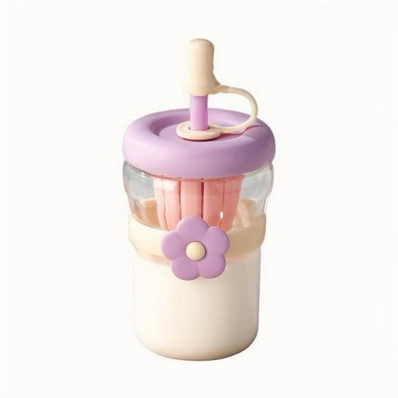 current price $16.86Glass Water Bottles with Straw, Fruit Infuser Bottles, Tumbler with Lid and Straw,Leak-Proof,Drinking Jars,Coffee Cup 500ml (Purple)