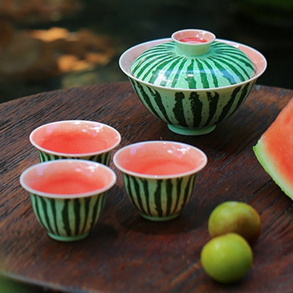 current price $7.67IBASETOY Adorable Watermelon Shaped Ceramic Tea Cup Handleless Design For Matcha Tea Comfortable Grip For Home Office