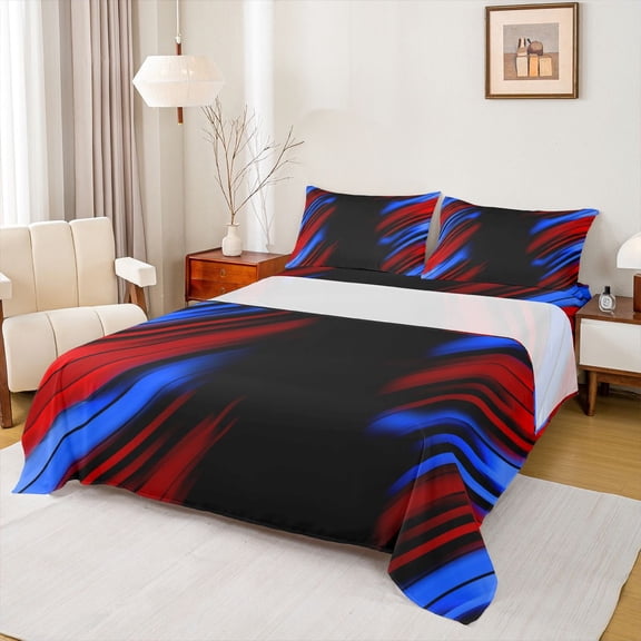 Abstracts Blue Ripple Queen Size Comforter Set, Gradient Lines Modern Ocean Wave Bedding for All Seasons, 4 Pcs Bed Set, 1Quiltcover (90"x92") ,1Sheet(94"x116"), 2Pillowcases (30"x20")