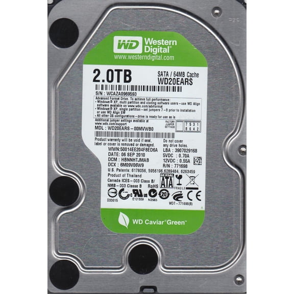 WD20EARS-00MVWB0, DCM HARNNTJMA, Western Digital 2TB SATA 3.5 Hard Drive $118.90