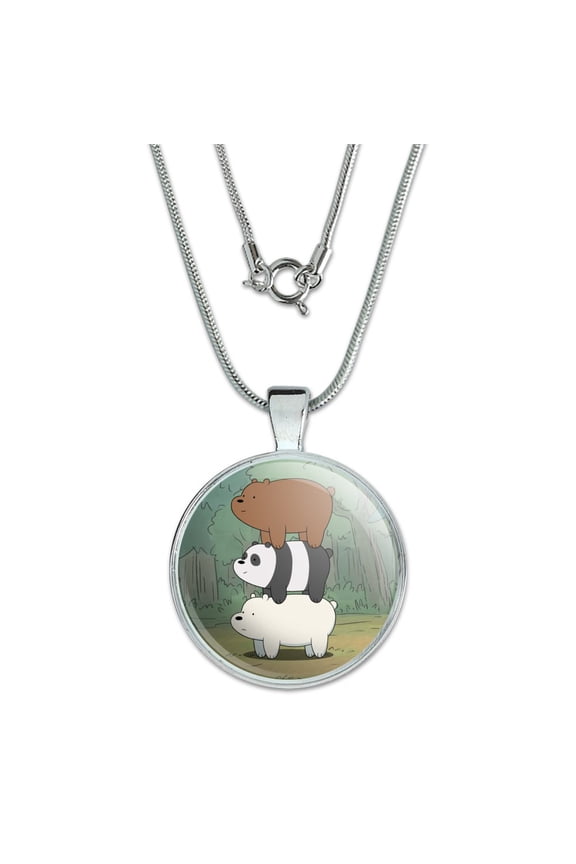 We Bare Bears Bear Stack 1" Pendant with Sterling Silver Plated Chain $14.49