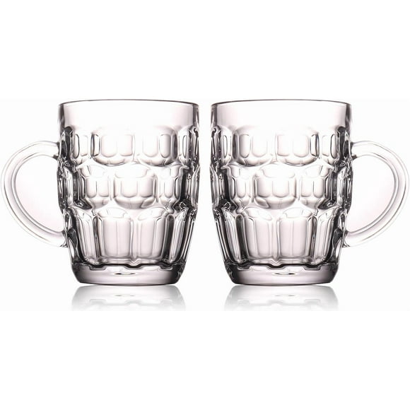 1 pint dimpled beer mug set of 2 - heavy british pub thick glass with handle - stein cup for beer lover in home party bbq