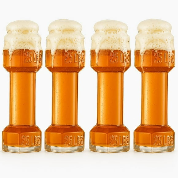Dumbbell Beer Glasses, Giant Lifting Beers 26oz Glass | Large Weightlifting to Scale Funny Beer Mug | Birthday, Christmas Men & Women, Dad Cool Whiskey & Water Glasses Perfect, Gifts - 4 Set