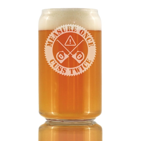 current price $19.95Bevvee Beer Can Pint Glass 16 oz Measure Once Cuss Twice DIY Enthusiast Gifts Beer Glasses