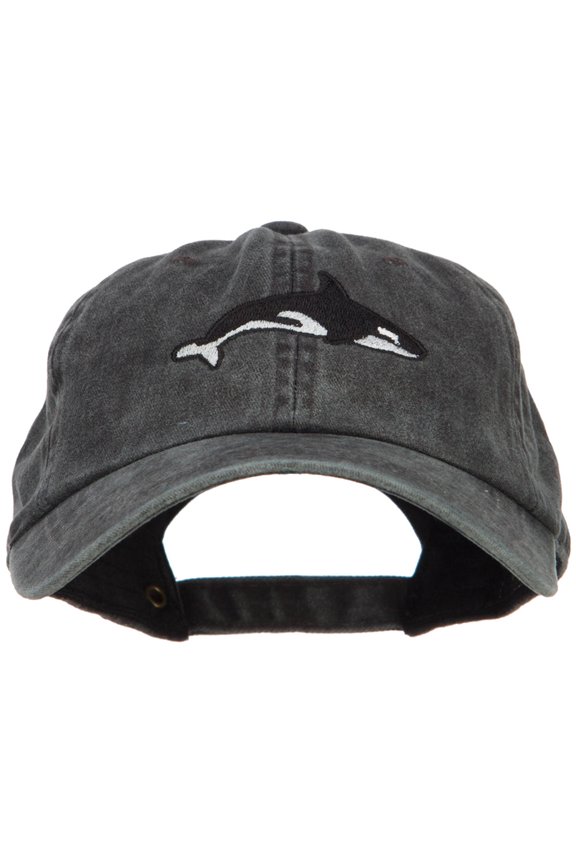 Killer Whale Embroidered Washed Cotton Cap - Black OSFM- s Orca Whale Hat Costume - One Size $20.39