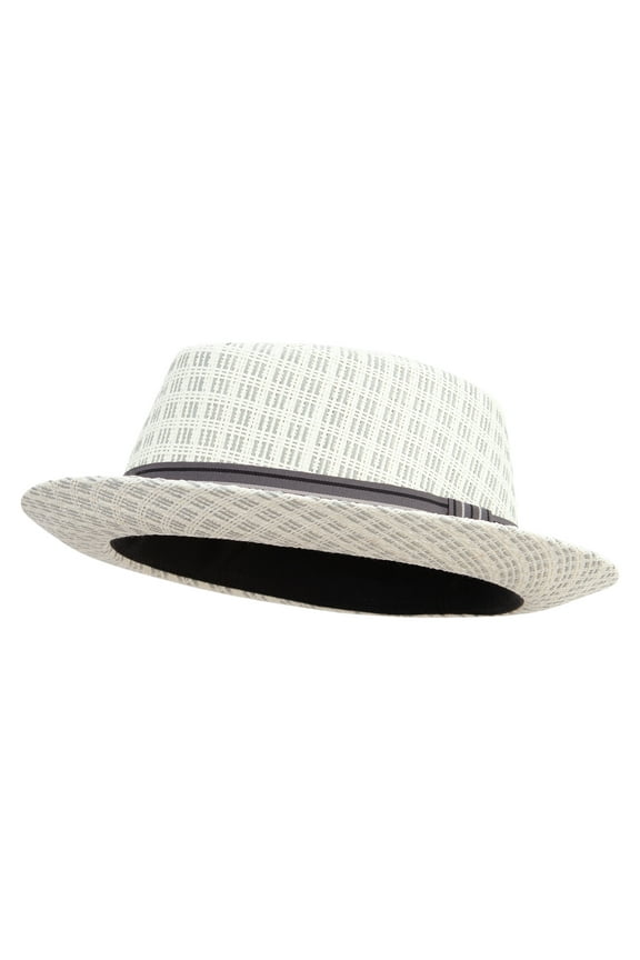 Men's Braided Wide Brim Pinch Fedora Matching Grosgrain Ribbon Hat in White H-42Men's Basic Poly Woven Fedora Hats White/Black