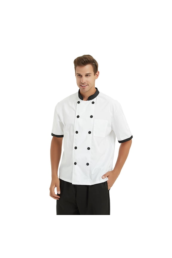 Unisex White Chef Jacket Sleeve Breathable and Catering Coat for Kitchen ProfessionalsUnisex Chef Jacket Color Matching Double Breasted Short Sleeve Stand Collar Food Service Uniform Chef Shirt Waiter Top for Kitchen From $14.01