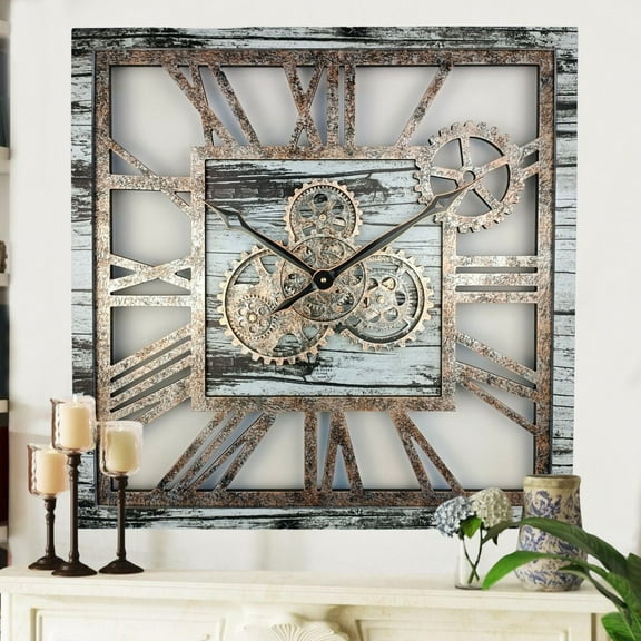THE GEARS CLOCK Wall Clock with Real Moving Gears AM-LI_ 24 in Square Grey-White From $151.99