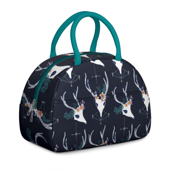 Nordic Deer Lunch Bag – Wild Buck Head & Forest Scene with Geometric Ethnic Elements, Perfect for Hunting & Nature Lovers