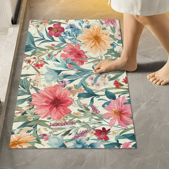 Toilet Rug Rectangle Bathroom Rugs Non-Slip Soft Plush Machine Washable Contour Bath Mat Watercolor Blooming Wildflowers 24x16 From $17.99